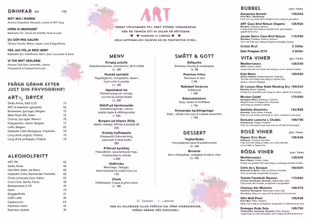 6.5/10Musik was good, the service was toi quicly They brink everything at the same time and let the dishes getting cold! We knew Art restaurang in the other adress in döbbelgatan, and was much better. We were verk desappointed of the change. Food not the good, less preparation, less imagination, pour recipe! Service Oto quickly, even after our notise!