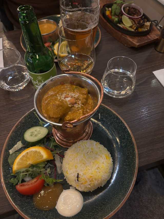 7.5/10A nice welcoming restaurant conveniently located close to public transportation and parking on Valhallavägen. Pleasant atmosphere inside. The waitress was friendly and pleasant but not very knowledgeable about the menu and the food served. The menu consisted of Indian/Bengali dishes, but they were unfortunately too adapted to presumed European tastes, i.e. too mild and served with unorthodox vegetables (how often o we find loads of carrots in Indian dishes?). Our group ate four different dishes with three of them being just "ok" and the fourth not very appetizing. The meats were all warm enough but clearly the plates with rice, salad and a few condiments had been sitting in the kitchen long enough that the rice was lukewarm at best.