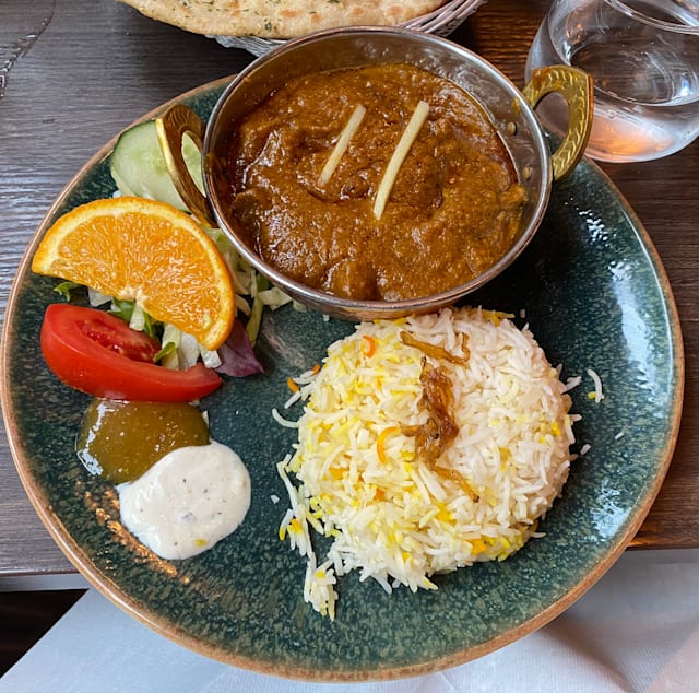 Balti betyder hink och är en gryta tillagad med krossade cashewnötter, paprika, lök, ingefära och färsk koriander.