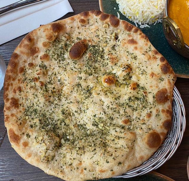 Smörstekt bröd fylld med ost/ kyckling. Friterad spenat och ostbullar med lök, ingefära och koriander