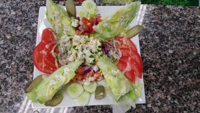 - Concombres, tomates, oignons, poivrons verts, olives, fromage feta, huile d'olive, herbes
