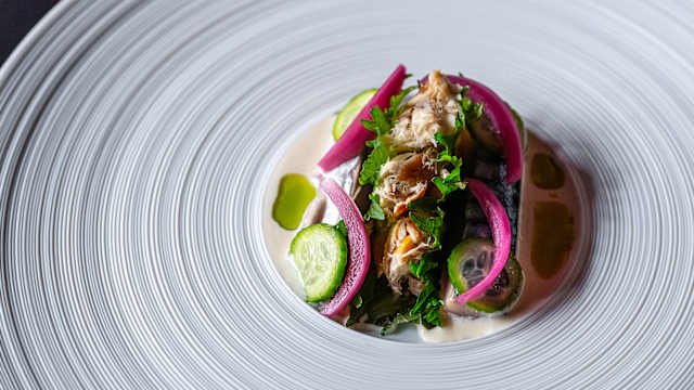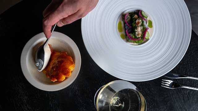 - Gnocchi, ui, kalamansi, uien crunch en bieslook