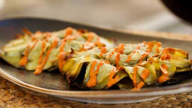 - Flores de alcachofas a la brasa con virutas de ibérico
