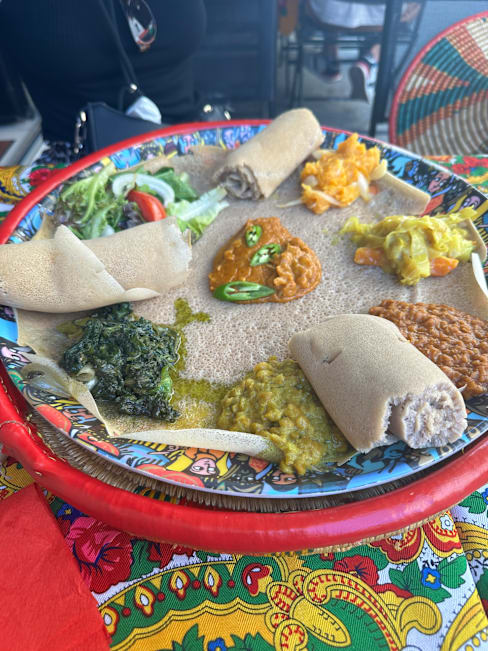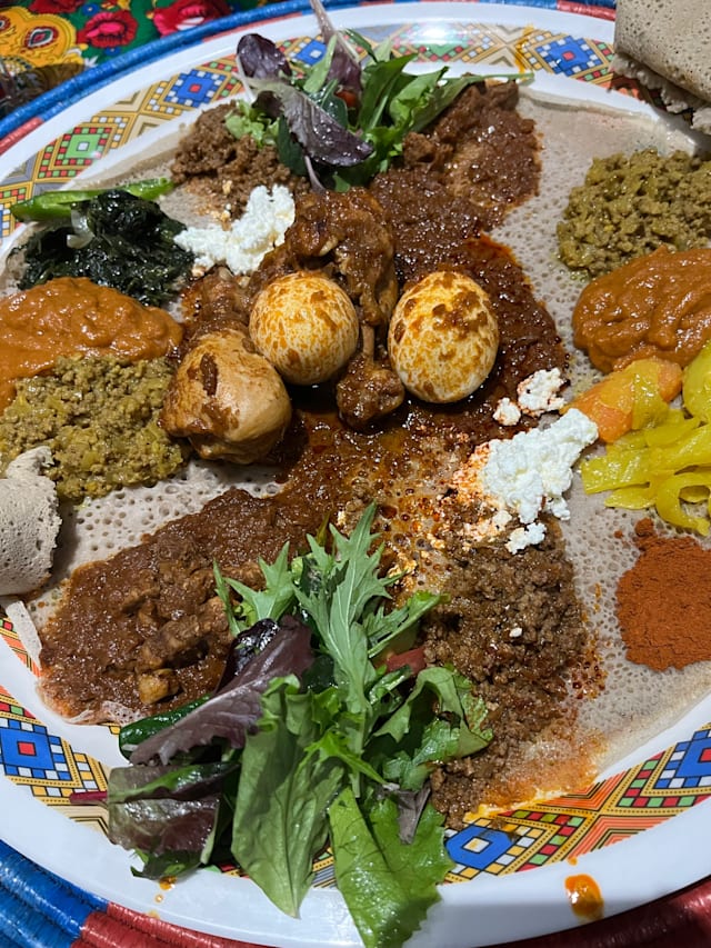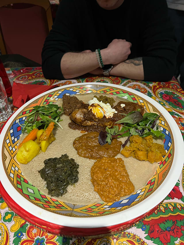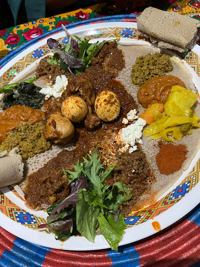 10/10What a place! Everything is executed to perfection. The mysterious mesob are the star of the restaurant. Inside they hidden an artistically arranged set of small dishes, which, like any rightful food, you eat them with your hands. For first timers, like most of us, you have the option to try a bit of everything. Nothing will disappoint you. Its ridiculous not to come here at least once.
