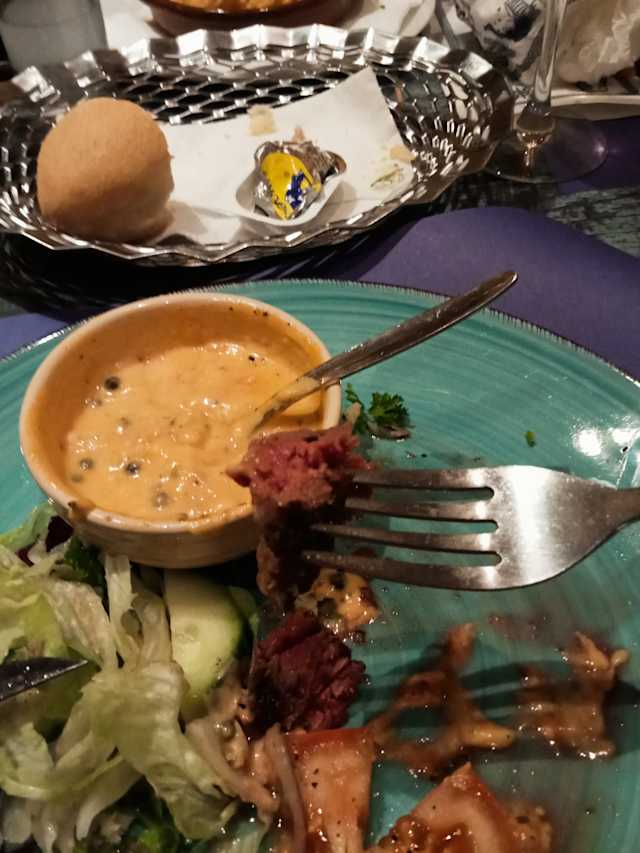 6/10Food was mediocre. Salads were simple but fresh. Grilled meat was ok, but little dry. Dishes were not really refined. Pricing was quite high compared to the food quality. There are much better places to eat and spend eur 40 pp for a simple dinner.