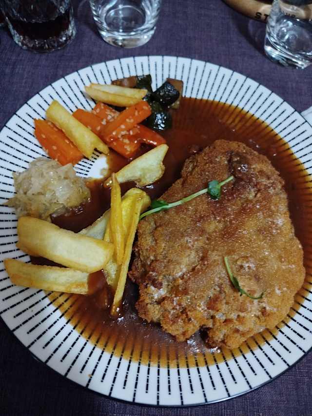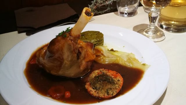 - Cordon bleu de veau à l'emmental, entrecôte de bœuf sauce au poivre vert ou beurre maître d'hôtel.