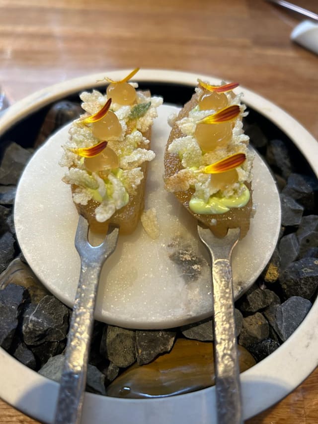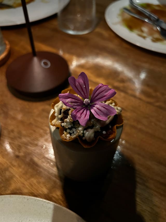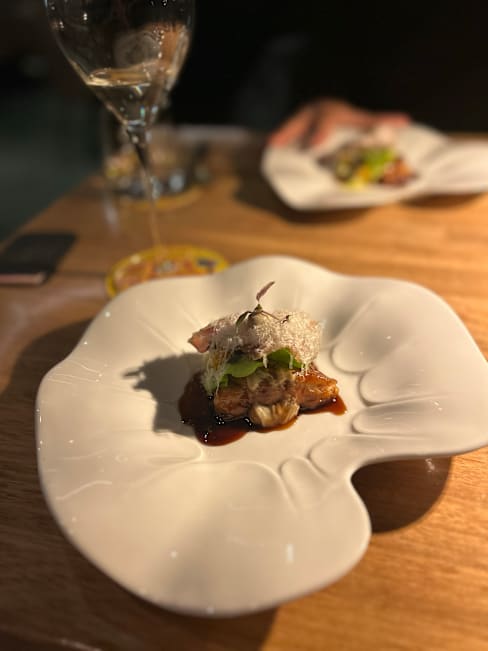 9.5/10The overall taste was superb, though we felt that the variety of ingredients in the vegetarian dishes could be enhanced. We opted for the 5-course vegetarian menu and found that several courses had quite similar flavor profiles. Each dish, however, was beautifully presented and well-explained by the staff, which we appreciated. One minor detail was that red wine glasses were used to serve white wine, and we noticed the same glassware being used for red wine at the neighboring table. We visited for lunch and enjoyed the lovely sunshine and serene waterfront view, though as the day progressed, the sunlight became quite bright at our table. A lovely touch was the complimentary bottle of champagne as a birthday gift—thank you for this thoughtful gesture and for creating such a memorable experience for us.