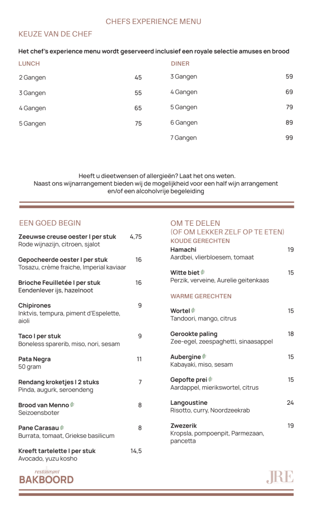 10/10Really nice experience like always, all is perfect at bakboord. We just didn't understood too much the artichoke dessert, the balance taste is not so smooth like all the rest of the menu, in the complex , perfect dinner. Thank you!