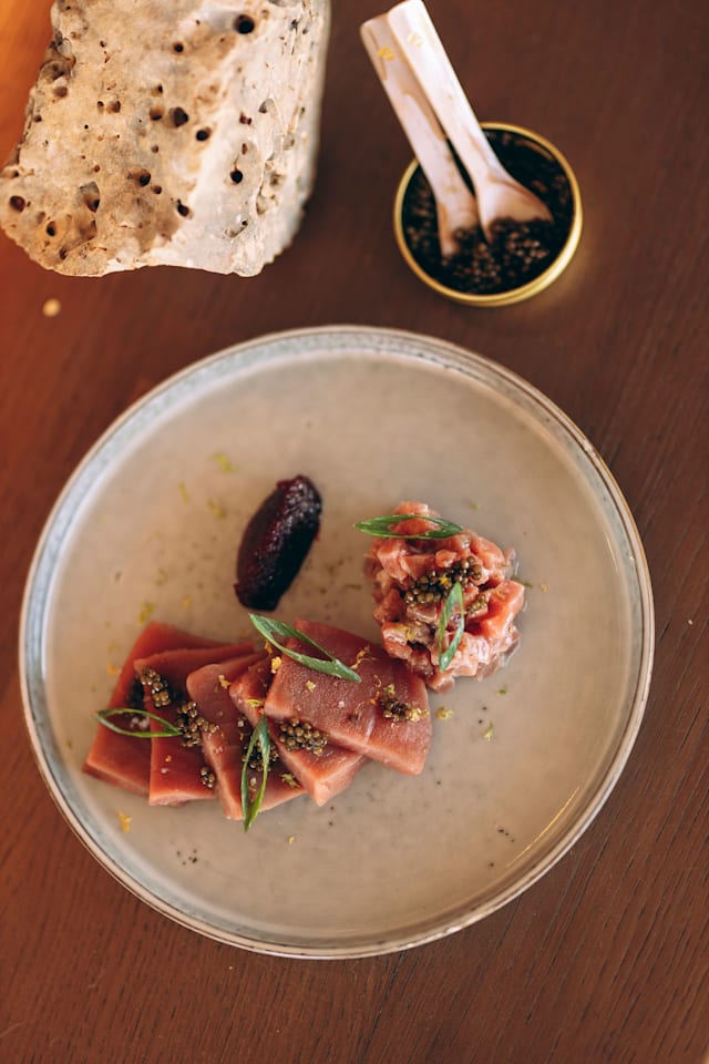 - Tartare de thon, pickles radis red meat & leche de grenade