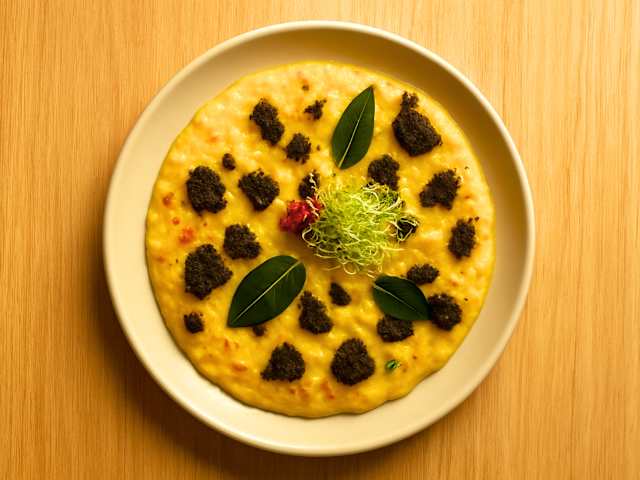 - Risotto aux herbes de montagne avec oignons rouges marinés et copeaux de rebibes bernoises
