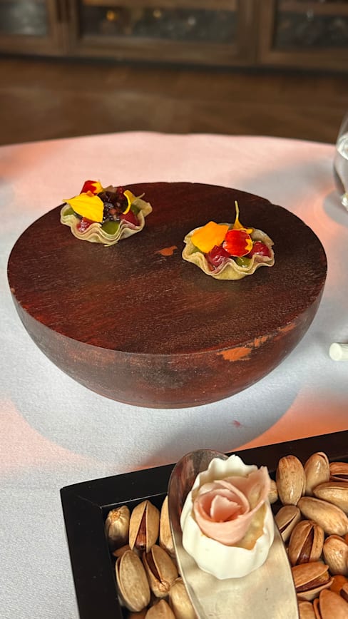 9/10Great food with surprising combinations and a mix of cuisines. Flawless staff and good wine pairing. Ambiance is tacky / corny and the silver sprayed flower bouquets don’t do the food justice.