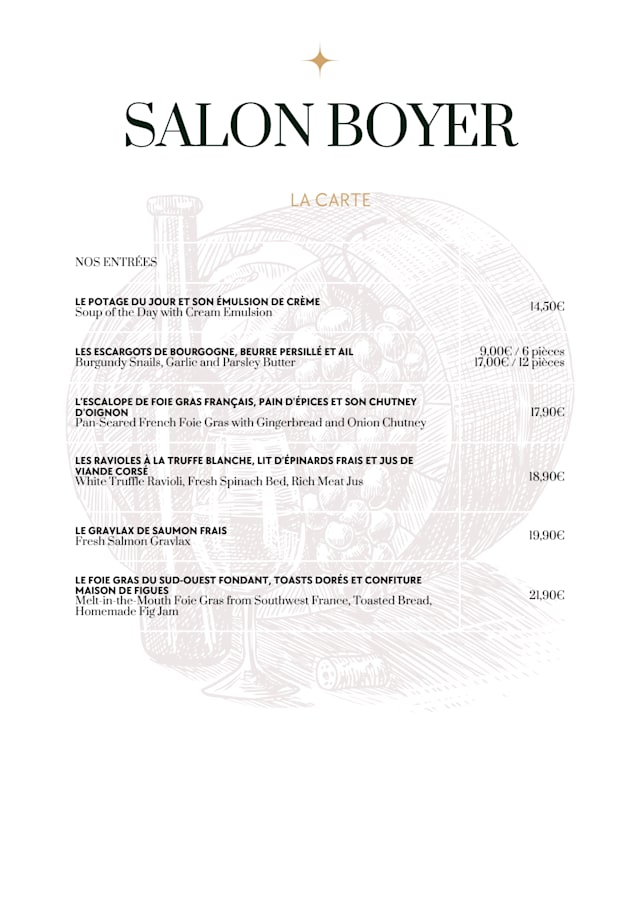 Bonjour, Merci d’avoir partagé votre avis. Nous sommes sincèrement désolés que votre expérience n’ait pas été à la hauteur de vos attentes. Vos commentaires concernant le poisson, le poulet, les entrées et les desserts sont pris très au sérieux et seront examinés avec notre équipe afin d’améliorer nos plats et notre service. Nous espérons avoir l’occasion de vous accueillir à nouveau et de vous offrir une expérience culinaire reflétant nos standards habituels de qualité et de soin. Cordialement, L'équipe Salon Boyer