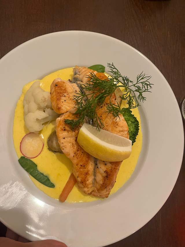 10/10Wonderful experience with local foods. The salmon appetizer was enough for two and the salmon melt-in-your-mouth tender. We had the reindeer and the wild boar. Both were very good, although we found the reindeer to be more tender than the boar so we would choose that dish over the other. For dessert we shared the “house cake”, a decadent, gooey chocolate cake. Atmosphere was like eating in a small house. Service was friendly and attentive. A good place in Old Town to enjoy a special meal.