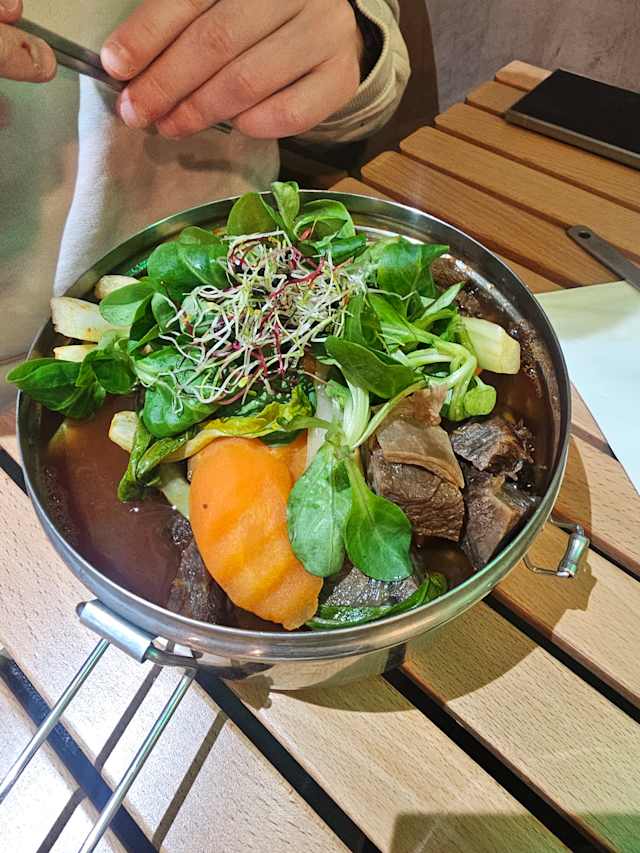- Nouilles bœuf braisé boeuf braisé, chou shanghaï, carotte avec soupe boeuf