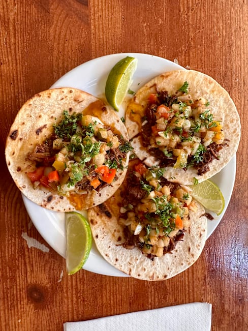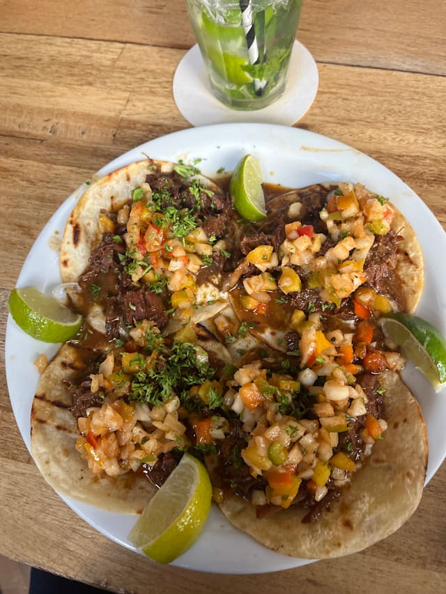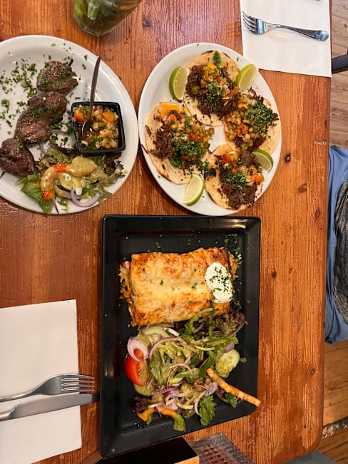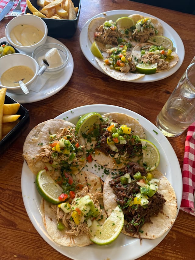 8/10Nice outdoor seating available, very nice in summer. Food options limited to tacos, nachos and quesadilla. Tacos are delicious, fair price too. Service could improve a lot, rather slow and all over the place forgetting order and long wait.