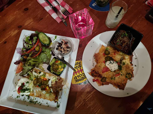 2/10This place used to be great, but clearly many things have changed. The food is extremely cheap, burnt nachos, no flavour. In the photos you can see what they serve as pico de gallo (literally just onions here), and my fajitas, which tasted like they were drenched in bbq sauce. I’ve had better food in gas station bars.