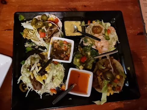8/10Nice outdoor seating available, very nice in summer. Food options limited to tacos, nachos and quesadilla. Tacos are delicious, fair price too. Service could improve a lot, rather slow and all over the place forgetting order and long wait.
