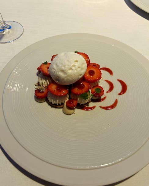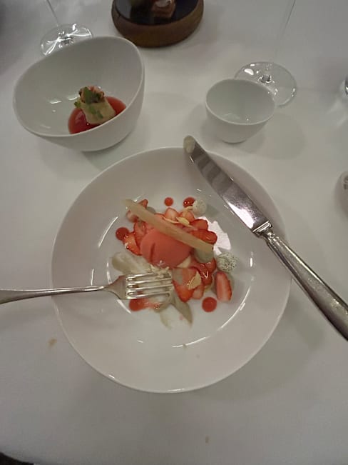 10/10For starters, the view and ambiance is amazing! We enjoyed the chef’s extras as well as the four services menu. All of the food was very good, but my favorites were the white asparagus with caviar and the dessert, strawberry Mara des bois. It was a wonderful experience!
