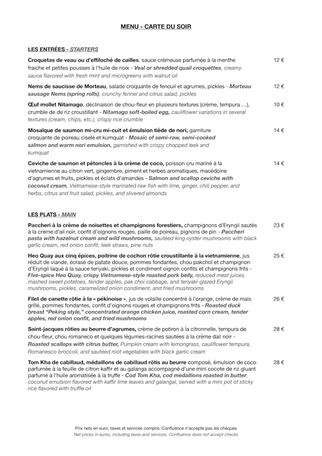 Yes, Restaurant Confluence has availability on TheFork currently. Do not hesitate, reserve your table on TheFork!