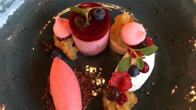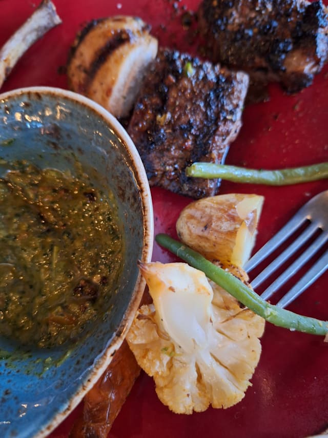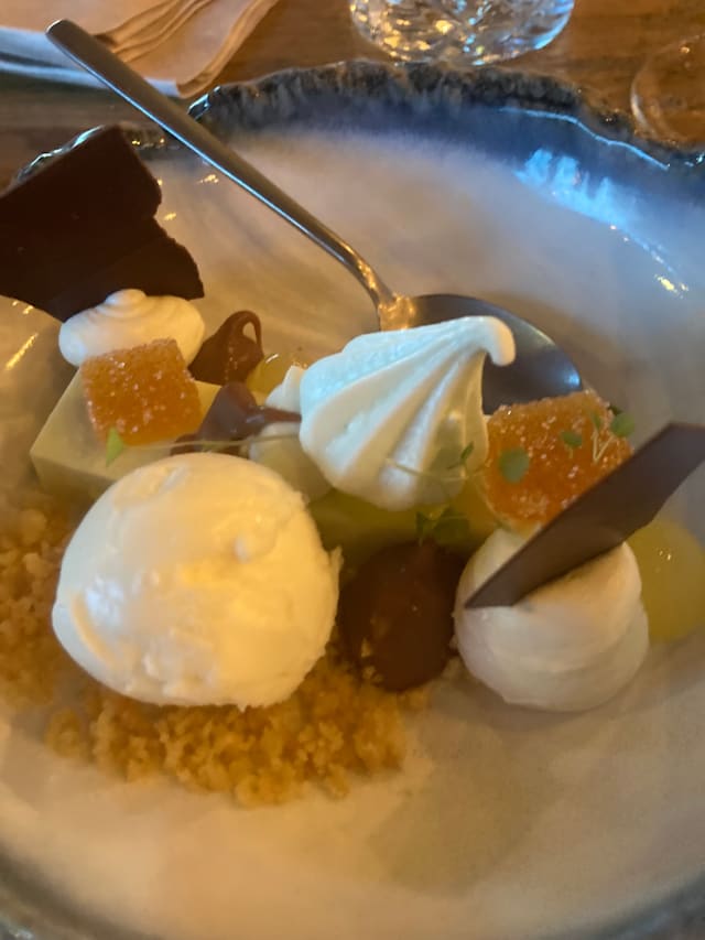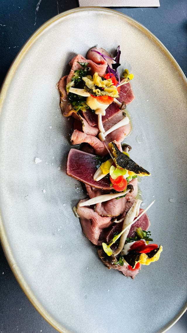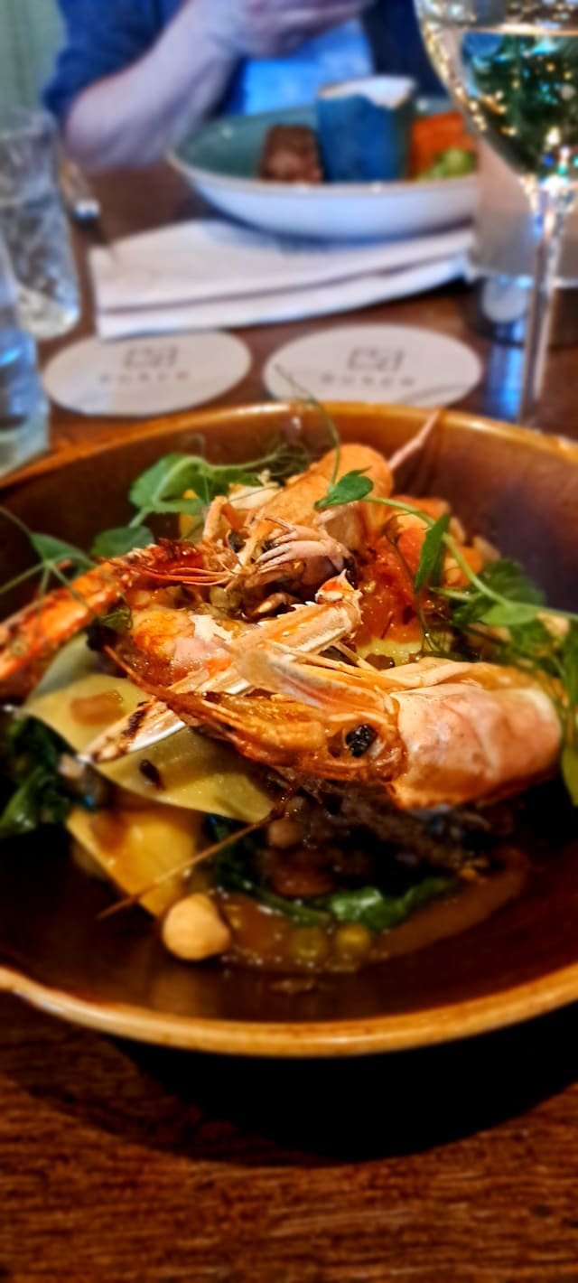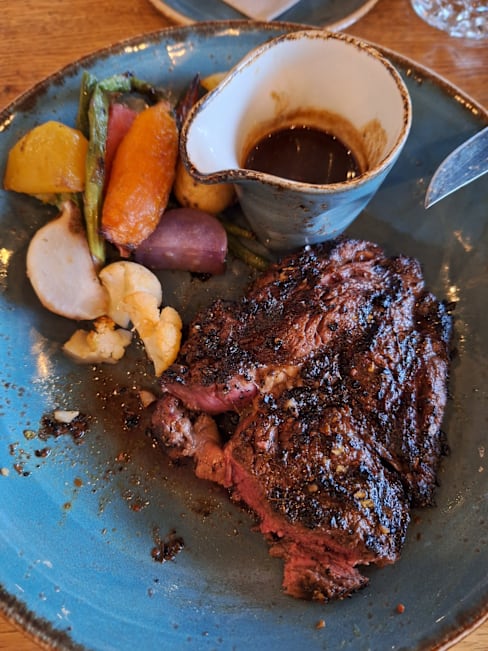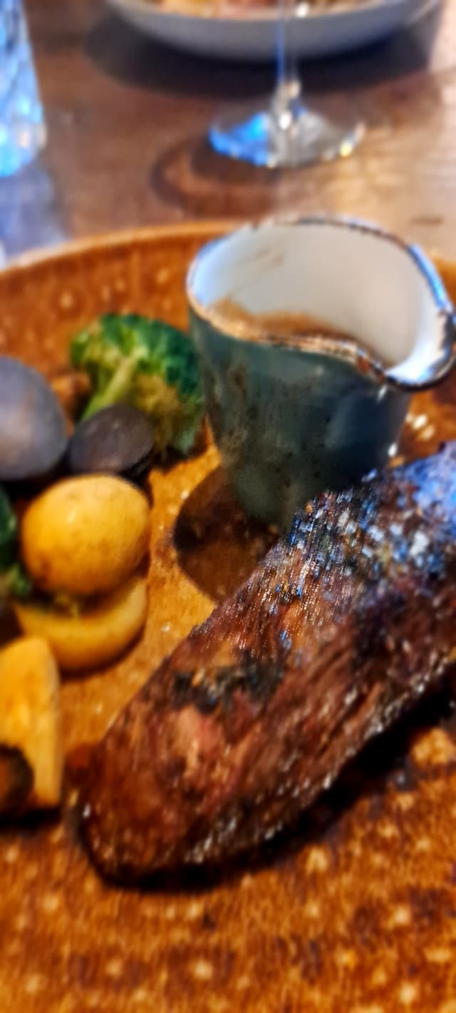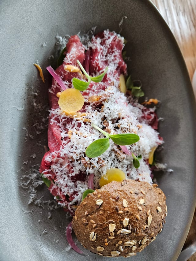 6.5/10The whole attraction was spoilt already at the entrance by the short service girl who pointed us to a table. She had a mine and a way of speaking that was very unpleasant, as if she was there for punishment. The impression was somewhat improved by the waiter who addressed us nicely, but the order in which he served us was wrong. First we were served our alcohol cards and then we had to wait a long time for our menu cards. Then it turned out that they were both compatible and the numbers indicated which wine went with which dish. Unfortunately, we had already ordered wine in advance. The dishes were correct, but did not impress with taste or creativity. The ribs did not taste very fresh. Someone has invested a lot in the premises but there is a lack of conscious service and freshness of ingredients.