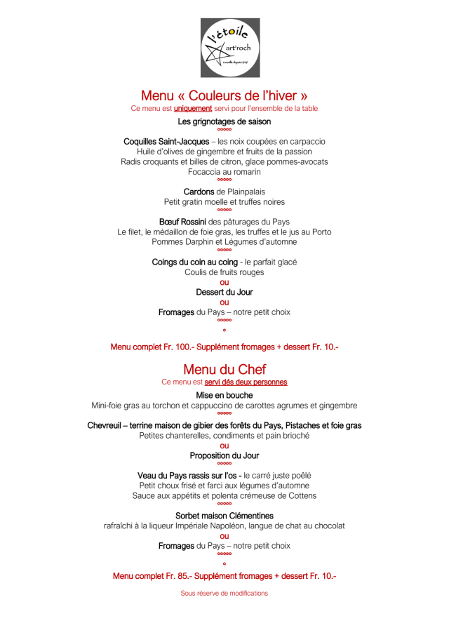 66 ANS DE TRADITION GASTRONOMIQUE - Au cœur du village de Noville, à proximité du lac et à seulement 2 Km de la sortie d'autoroute de Villeneuve, l'Étoile a de quoi séduire une large clientèle de gourmets. CUISINE DE SAISON - À chaque saison son lot de spécialités. Au printemps : dents-de-lions,...