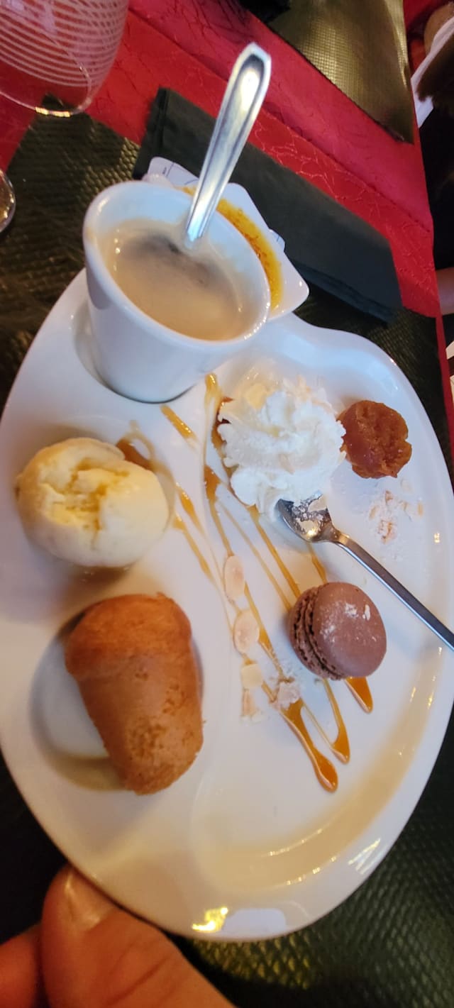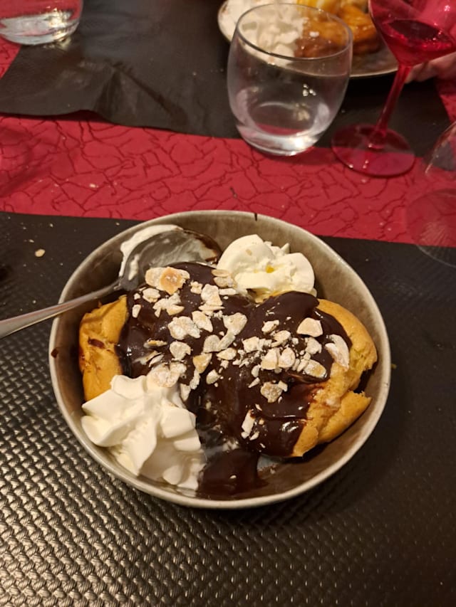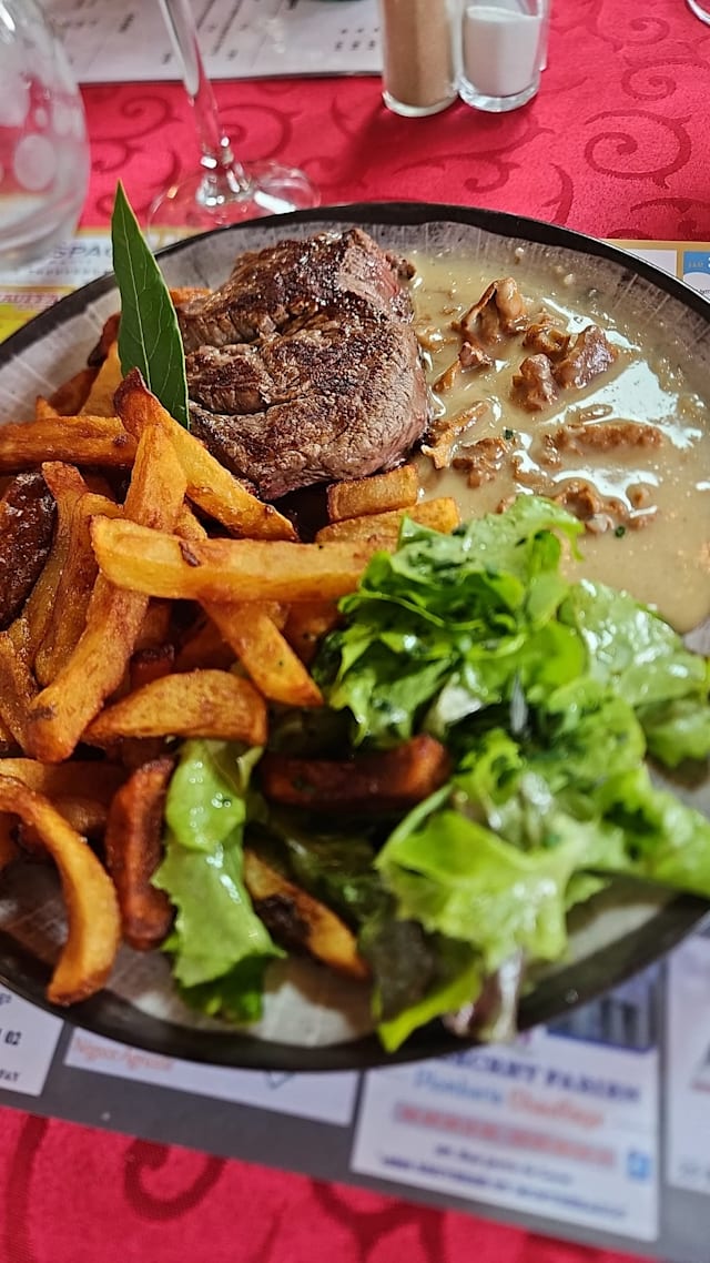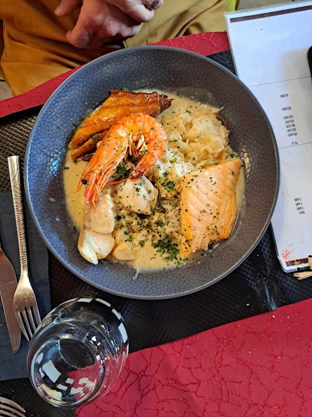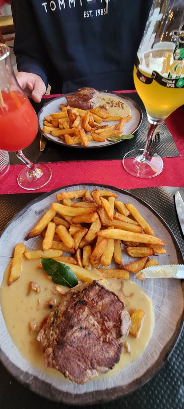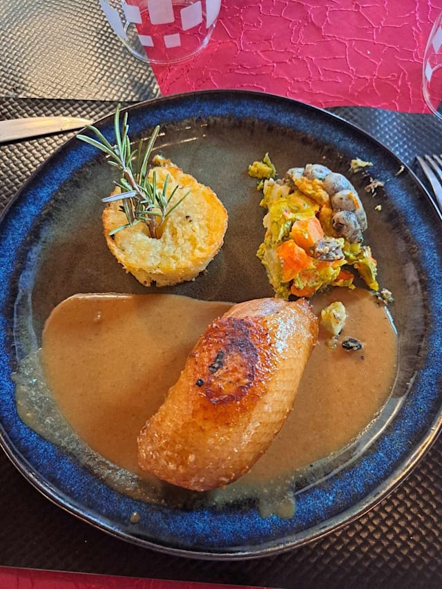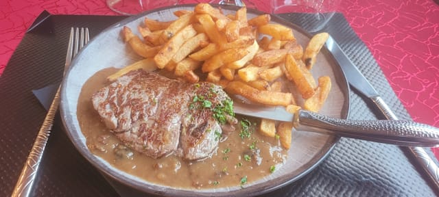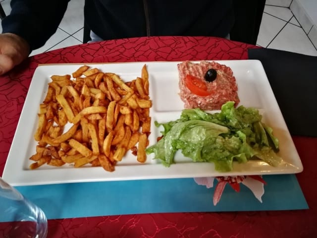 4.5/10The Turbot was inedible. It appeared to have been microwaved and was a lump of rubber it was promised with dill but came with a heavy and overpowering tomato sauce.. The frites were just English style chips. The restaurant is on a very busy D road to Reims so HGVs rushed past he windows constantly..