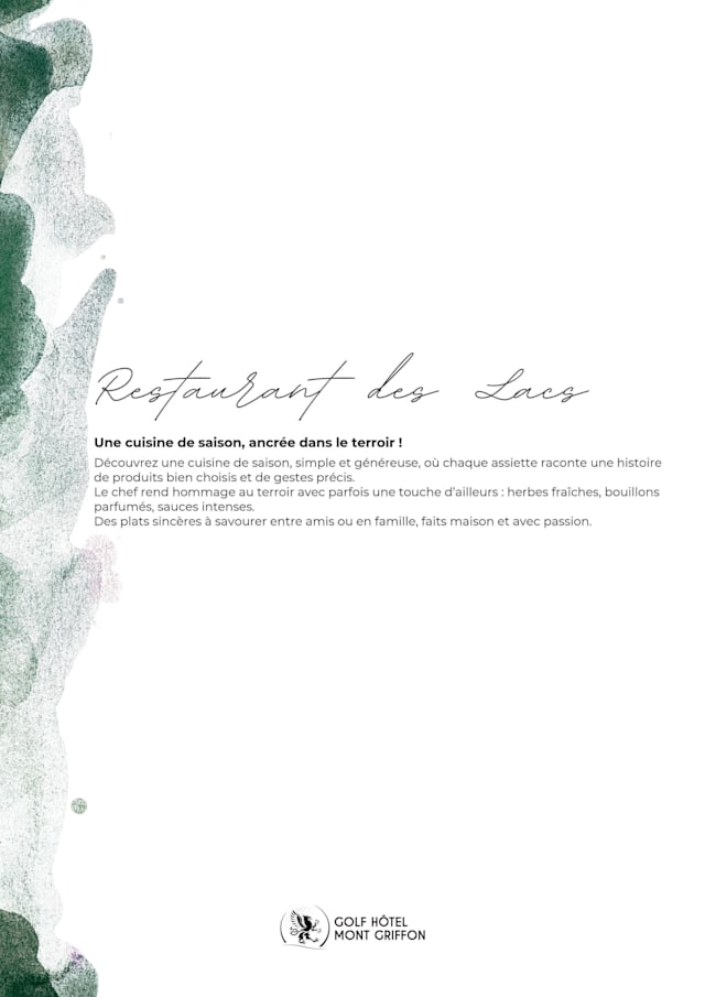 Restaurant des Lacs Golf Hotel de Mont Griffon is rated 8.3/10.TheFork users have rated accordingly in the following categories: