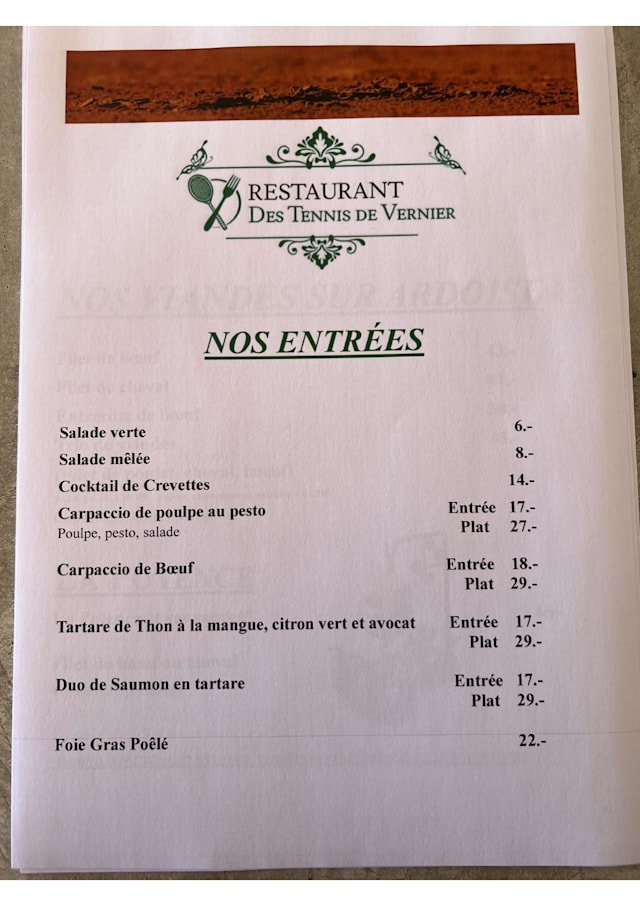 8/10Felt slightly odd going past the tennis courts to get into the restaurant, but really nice atmosphere inside and great food reasonably priced - especially with 30% off - thank you TheFork! Nice extra touch of a delicious amuse-bouche while we were waiting for our food.