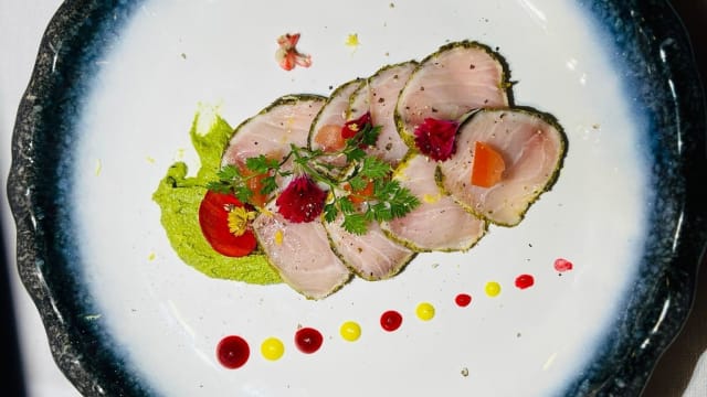 Calamars marinés au piment vert, avec mousse de citron acidulée