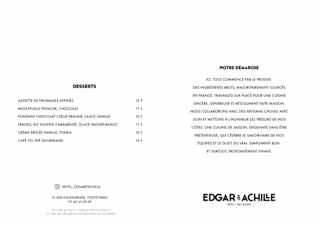 Restaurant Edgar & AchilleSumer, i love your name ;) Thank you so so much for your very kind review. We hope to welcome you again soon. Have a lovely evening, Charlotte - Directrice d'exploitation
