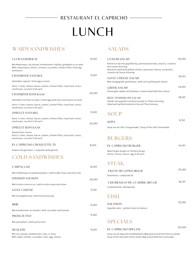 10/10The Angus Steak straight from Argentina with lovely potato, house wine and wonderful staff made my stay memorable and I cannot wait to come back there. If one loves the high end quality and tasty meat El Capricho is the place to go.