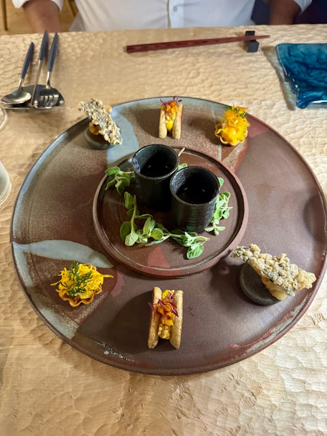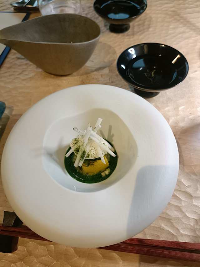 10/10The restaurant is hidden behind sliding doors in an sake shop, which was super cool. We've booked for lunch and there was a personal, hand-written welcome card on our table - talk about attention to detail. The menu was very creative and tasty, the service was very good, overall a very enjoyable experience. The price of Euro 80 is very reasonable for what you get, can highly recommend.