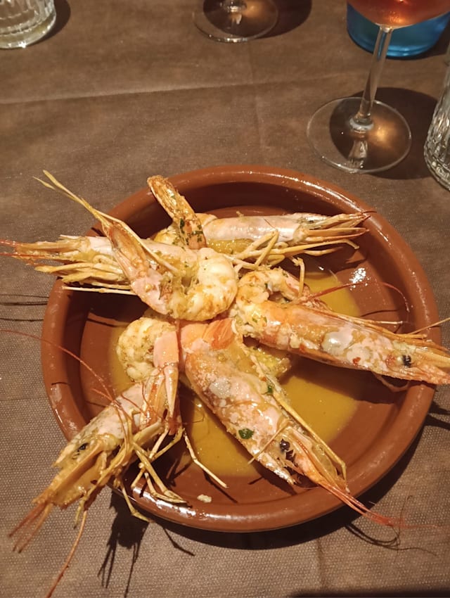 Gebratene argentinische riesengarnelen mit granatapfel und peperoncino soße