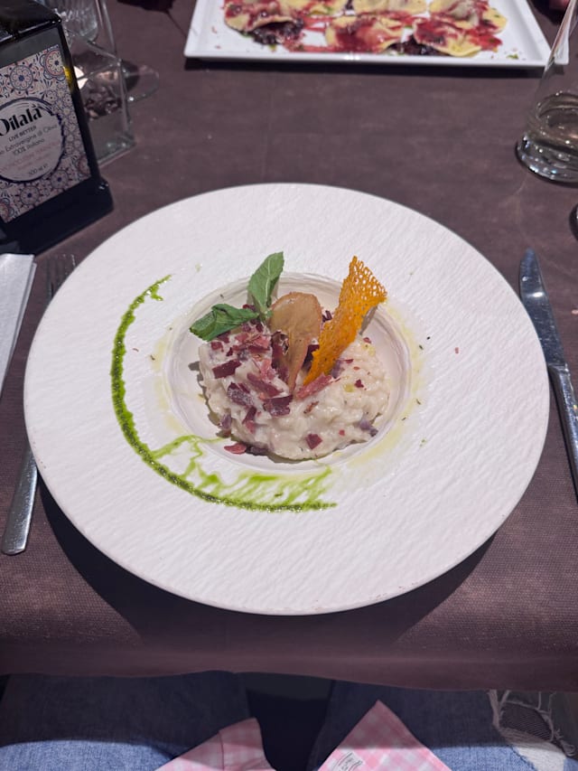 Hausgemachte ravioli mit hirschfüllung in waldfrucht soße