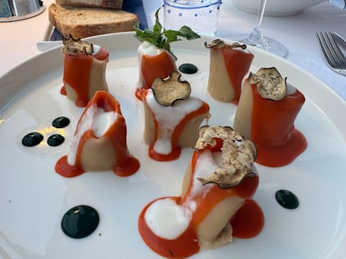 7.5/10We went to this restaurant knowing that it was very expensive and exclusive. The food was very good, but if you are expecting a traditional Italian meal this is not the place to go to. For a restaurant as expensive as this one, they should have some sort of aircon. They did not even have a fan. We sat outside, with a beautiful view but we dined with bugs, they were all over the table constantly. The heat and bugs is somewhat expected at some restaurants, but not when you are paying as much as you are here. The service was ok, somewhat standoffish. This felt more like a French restaurant rather than an Italian one. They had beautiful views but with so many other options with some sort of ventilation we will not be returning here.