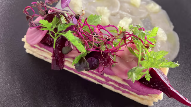 - Purée de panais et sa glace, émulsion au sobacha, sauce caramel au miso, biscuit au sarrasin