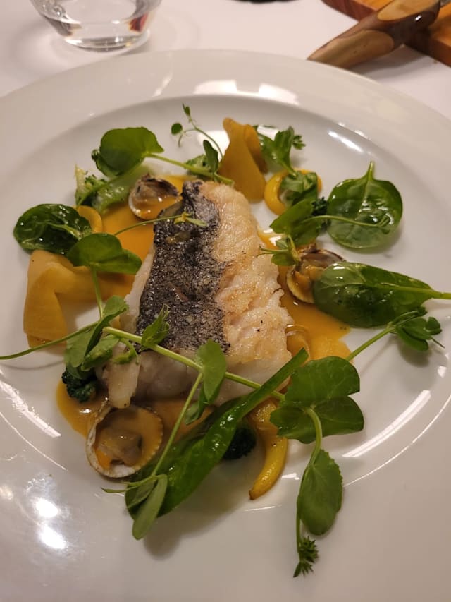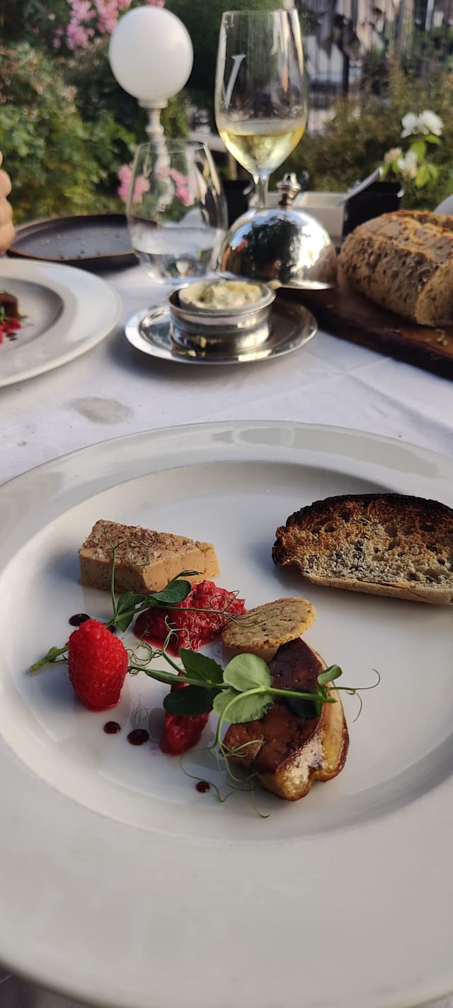 The starters and desserts were great, our main courses - we both had fish - a bit plain and uninteresting. I would recommend to choose meat when visiting the restaurant. Be aware that the champagne they offer as an apero comes at a high price. The environment and atmosphere is lovely though...