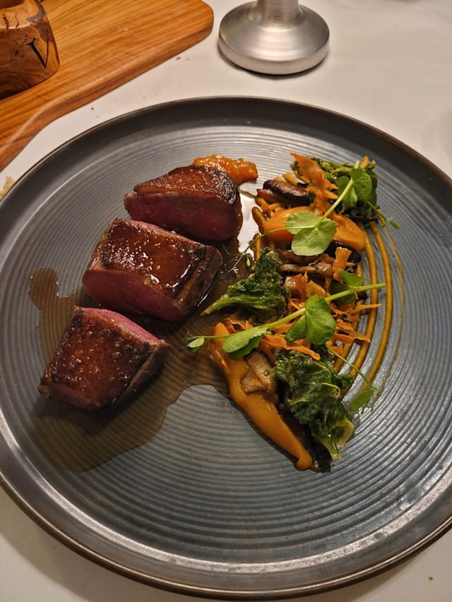 Nice seating, attention to detail, fast and friendly service worthy of any occasion. Good chat, but not too much. Food and wine excellently advised. Wife: sweet fruit-desert. Me: cheesecart rolled up and choice of many with excellent explanation. A very pleasant experience! You get the idea that the waiters are happy to work here..Thank you