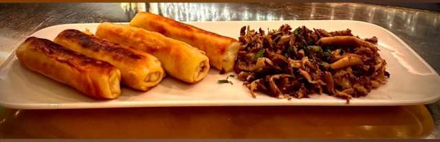 Tranches d’aubergine grillées roulées avec une pâte de noix et des épices géorgiennes.