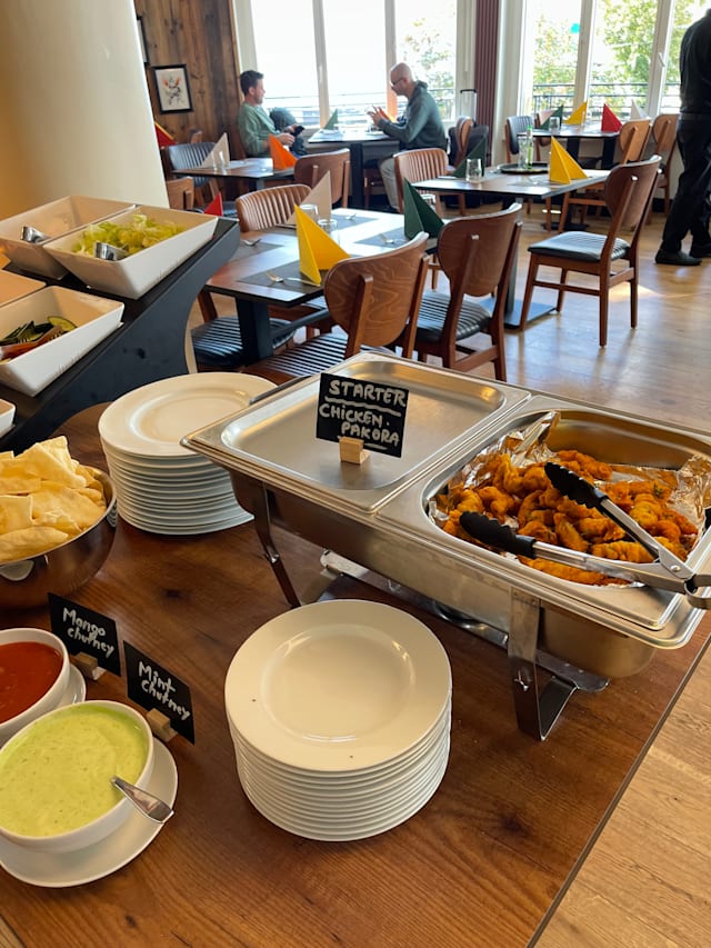 6.5/10Food was very good. Nice location, was seated outside on the balcony with a lake view. Unfortunately with one waiter the service was not so good, no smile, not welcoming, which impacted the experience. Friend ordered a vegetable madras, but waiter pointed to something else on menu and said ‘this will be better for you, at madras spice level’, without giving us a chance to read it properly on the menu. When he brought it out, it was a paneer curry ( friend has allergies to cheese). Immediately raised this to the server and he just said ‘you can pick around the cheese’, ‘what do you want me to do’ and walked off. This would have left not much curry left and wasn’t an acceptable solution ( esp with the price of a dish) so had to raise the issue again and after a lot of persuasion and a waiter clearly not bothered or wanting to help, managed to get a replacement ( although suspect cheese had just been picked out). The other waiter however, was fantastic, the high service expected.