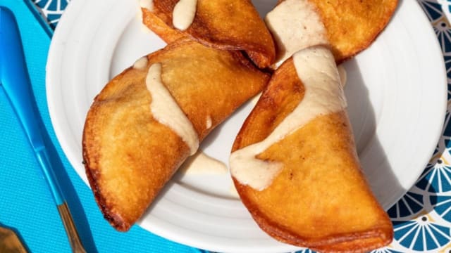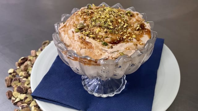 Avec feta, pistache, sirop de date, tahini servi avec pita