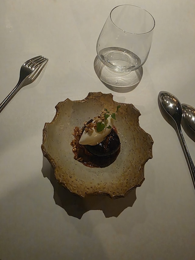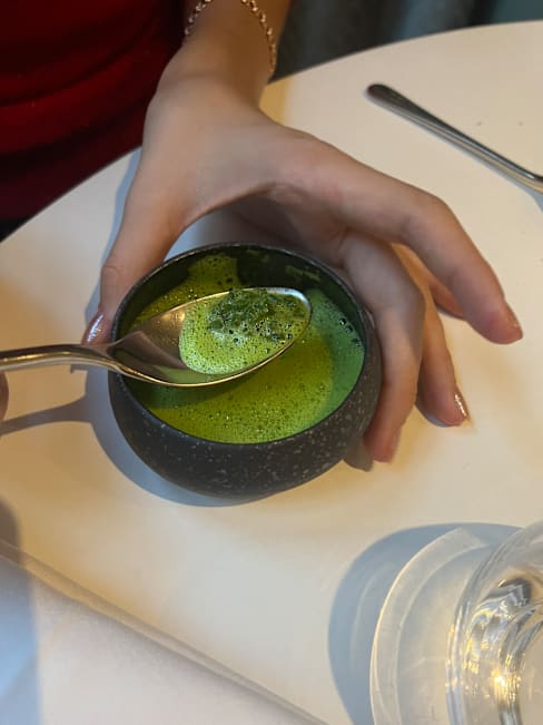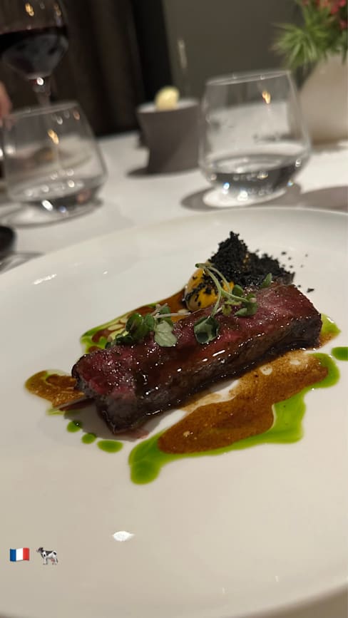 7/10Tomatoes and ice cream do not blend well, resulting in a separation in taste. The green one is temporarily referred to as the soup, which was okay at first but became increasingly salty later on. Fortunately, the main course was very good, and the beef tasted great. The cherry dessert base has an ordinary taste. Overall, there is a lack of expectation