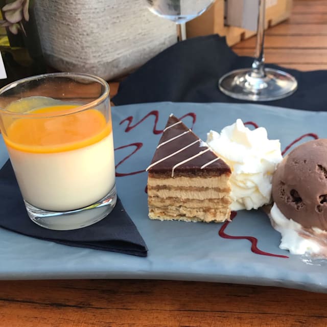 5/10Very very slow service at first. Bit better later on. Admittedly the waiters did do their best and were kind. The food was nothing special. Nice views, there you go.
