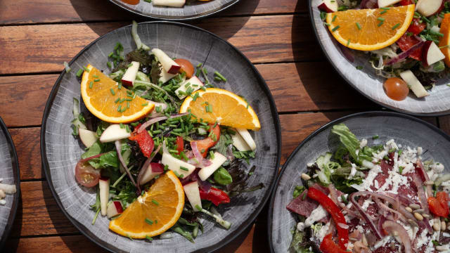 - Feta fresca: frisse Griekse salade met fetakaas, olijven, rode ui en pijnboompitjes.