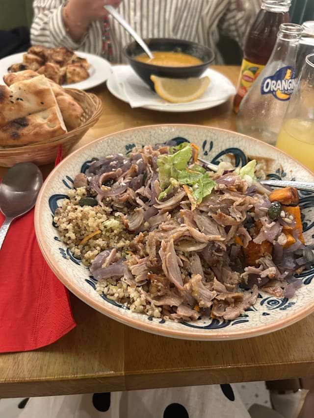 4.5/10I never saw a place that offers fries without any sauce! We had to ask the waiter to bring us sauce. When we got the sauce, the Haresa was so disgusting, it tasted and smelled like a fridge, and had a fermentation taste. We ordered Hünkar begendi and Kebab bowel. The Hünkar begendi was delicious, while the Kebab bowel was so low quality and didn't worth it. The only good part of the Kebab bowel was the quinoa. The waiter behavior was so bad, impatient, no smile and offered horrible customer service just because I didn't know french and was speaking in English! If you are a tourist, you won't feel welcomed in this restaurant because of this waiter. Overall, I don't recommend this place.