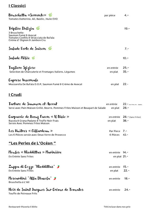 Merci pour votre commentaire, Nous sommes constamment à l'écoute de notre clientèle. N'hésitez pas à venir nous voir. A très bientôt. Toute l'équipe du Restaurant - Pizzeria Il BiVio à Morges.❤️