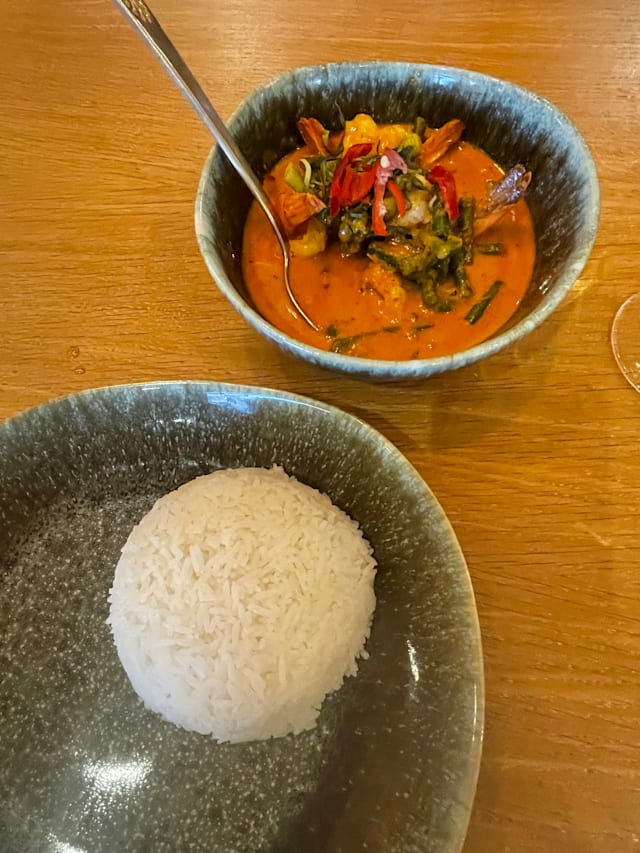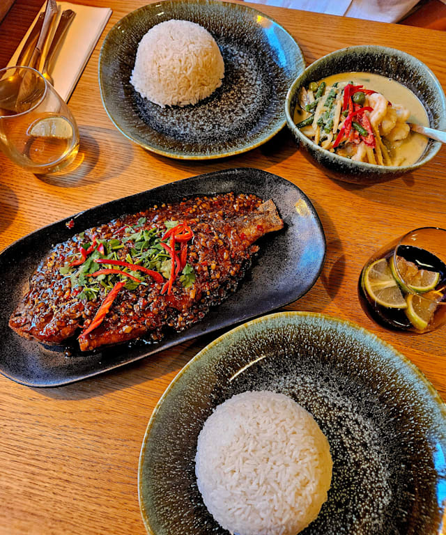 8/10The food was really nice, only comment: I would have loved it if it were more spicy. The papaya salad was marked with 3 chillies but not spicy at all, almost bland. The green curry could also have more of a bite. But all and all a very good experience