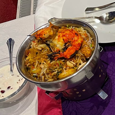 7/10We had lunch there and chose to eat à la carte instead of buffet. Ambiance is OK, service was excellent. For appetiser we had eggplant pakora which was only OK. Lamb biryani was excellent, flavourful. Murgh Kashmiri was disappointing: even though the sauce was smooth & creamy it lacked flavour, just tasteless, chicken was generous but dry, nuts were not found, we were told they were ground. Ordered spritz which was served without ice cubes and orange. The former was supplied when we asked for it.