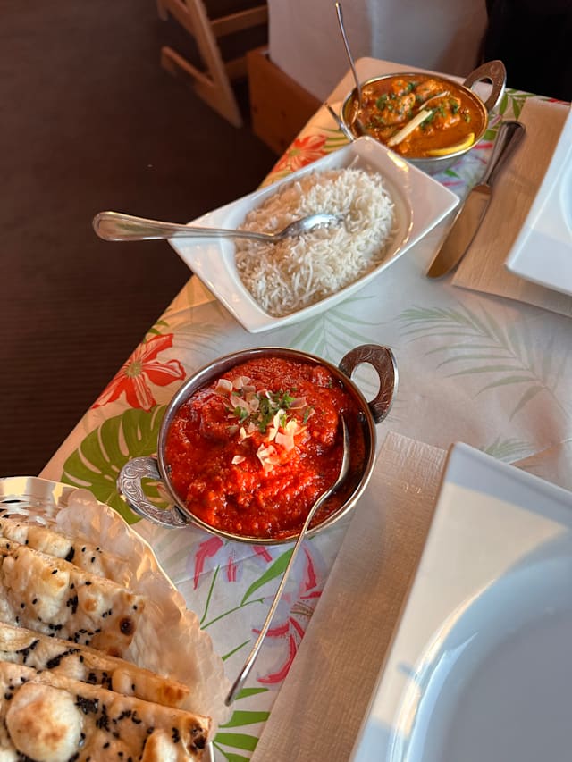 10/10We are at the Kings Tandoori on a Sunday evening. Absolutely delicious! We ordered a Matka Vegetables Hyderabadi Biryani, Chicken Korma and a Butter Chicken. All were incredible. The portion, while they may seem small, are more than enough. The food is very filling, the naan was warm. The staff deserves a mention as well, so nice and accommodating, very willing to help you out to make a choice. In conclusion, I more than recommend this restaurant.