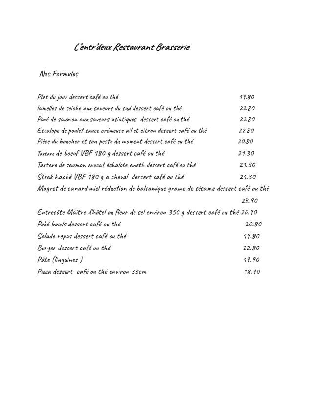 Yes, Restaurant l'entr deux is offering 20% off the 'a la carte' menu Reserve your table and enjoy your special discount now on TheFork!